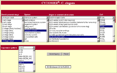 Figure 3: Web interface of CYTOMER C. elegans (see http://www.gene-regulation.com) |